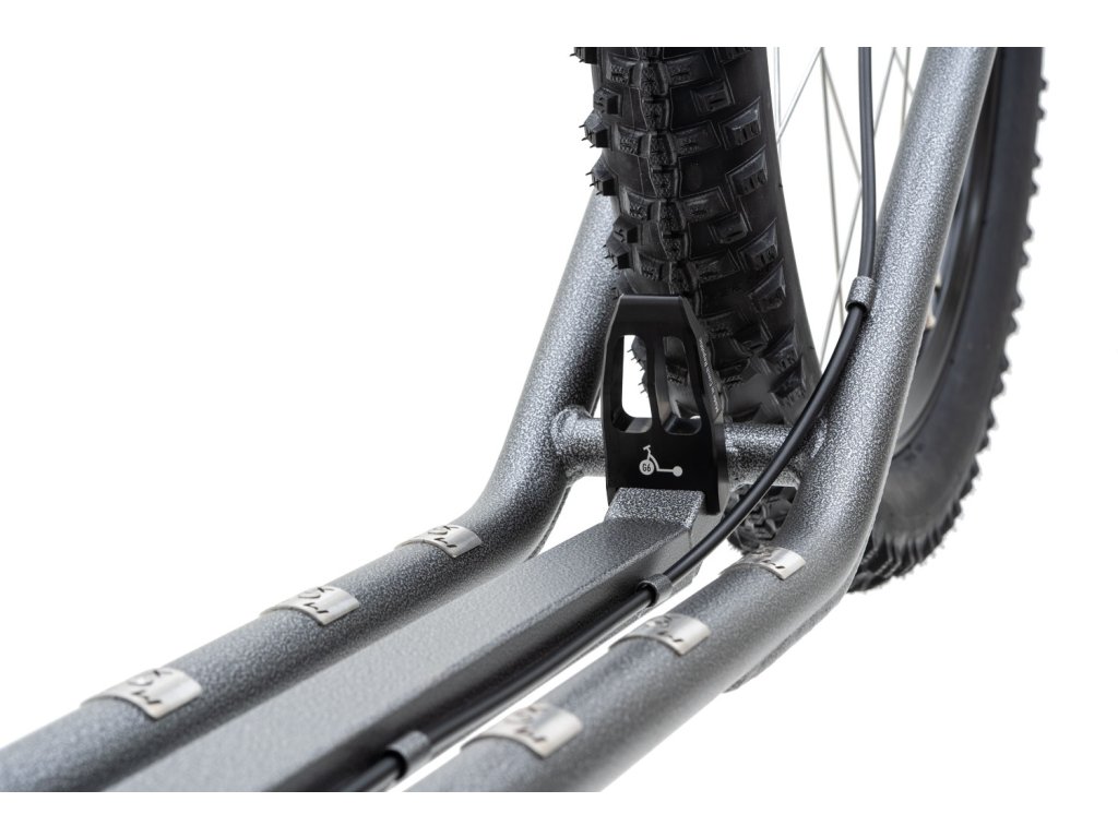 Koloběžka Kostka Mushing Racer Max (G6) je ideální pro mushery a náročný terén díky pevnému rámu šesté generace s vyztužením, zvýšeným stupátkem a velkými koly (27,5" vpředu, 24" vzadu), která zajišťují vynikající průchodnost. Hydraulické kotoučové brzdy Shimano 395 s 180mm kotouči poskytují spolehlivé brzdění, zatímco univerzální pláště Schwalbe Smart Sam kombinují nízký valivý odpor s přilnavostí v těžkém terénu. Pevná vidlice eliminuje ztráty energie, a semi-integrované hlavové složení spolu s 720mm širokými MTB řídítky zajišťují přesné ovládání. Dvoustěnné ráfky, nerezové paprsky a japonská ložiska Kostka minimalizují odpor a zvyšují odolnost. Integrovaný adaptér a pružné vodítko pro psa doplňují výbavu, díky níž je tato koloběžka perfektní volbou pro musherské závody i výlety do přírody.Doplňkové parametry